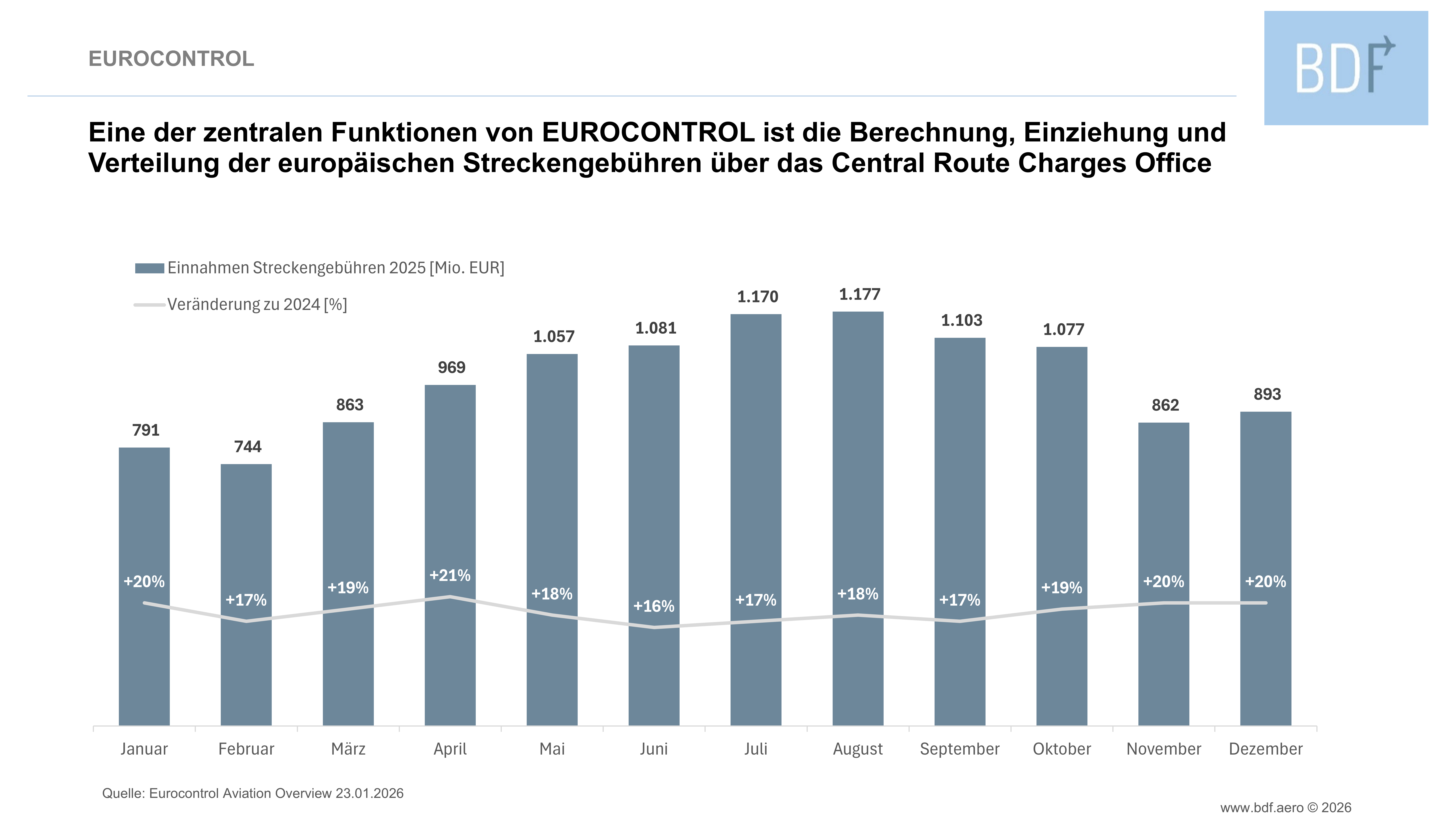 Im europäischen Luftverkehr nimmt EUROCONTROL eine Vielzahl von Aufgaben wahr, die von den Mitgliedstaaten auf die Organisation übertragen wurden. So erstellt die bei EUROCONTROL angesiedelte Arbeitsgruppe STATFOR Verkehrsprognosen, die unter anderem in die Berechnung der Flugsicherungsgebühren einfließen. Über das Central Route Charges Office (CRCO) werden die im Enlarged Committee von EUROCONTROL festgelegten Streckengebühren im Auftrag der Mitgliedstaaten von den Luftraumnutzern erhoben und anteilig an die nationalen Flugsicherungsorganisationen verteilt.