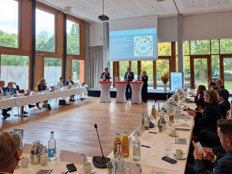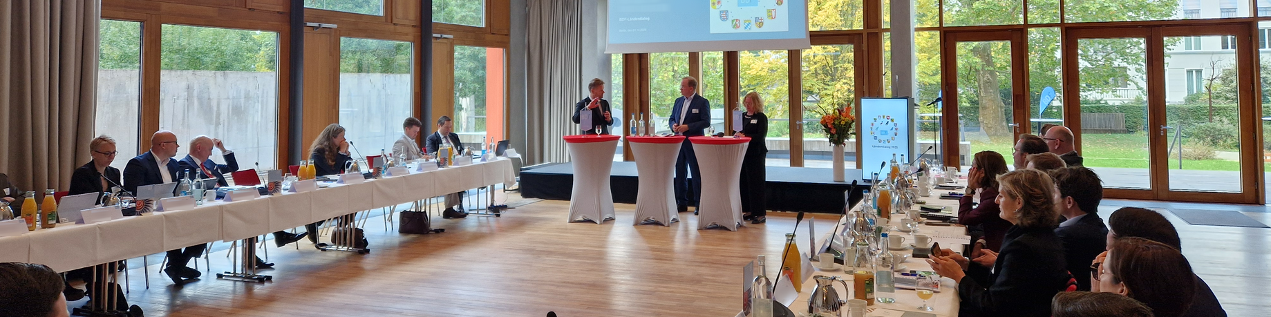 Auch in diesem Jahr brachte der BDF-Länderdialog wieder Vertreterinnen und Vertreter der Bundesländer, der BDF-Mitgliedsunternehmen sowie der Luftfahrtpolitik zusammen. Die Veranstaltung fand erneut in den Räumlichkeiten der Landesvertretung der Freien Hansestadt Bremen statt. Staatsrätin Nancy Böhning begrüßte die Teilnehmerinnen und Teilnehmer herzlich.
